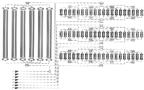链条的种类很多,有滚子链、板式链、悬挂链、齿形链以及各种异形链等。针对不同种类的链条,有不同的润滑方 式,可采用泵和分配器组成的润滑系统用油刷对链条进行涂油润滑(见图18),也可用脉冲泵对链销进行润滑(见图19);另一种润滑方式,即利用油气润滑的原理对链条进行极其精细的喷射润滑(见图20),一台油气润滑站可同时对输送辊道上的几十根链条进行润滑,这种润滑方式尤其适用于传动速度较快的滚子链。