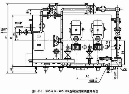 注:1、A 为带压力罐的稀油润滑装置,呈正方形布置。